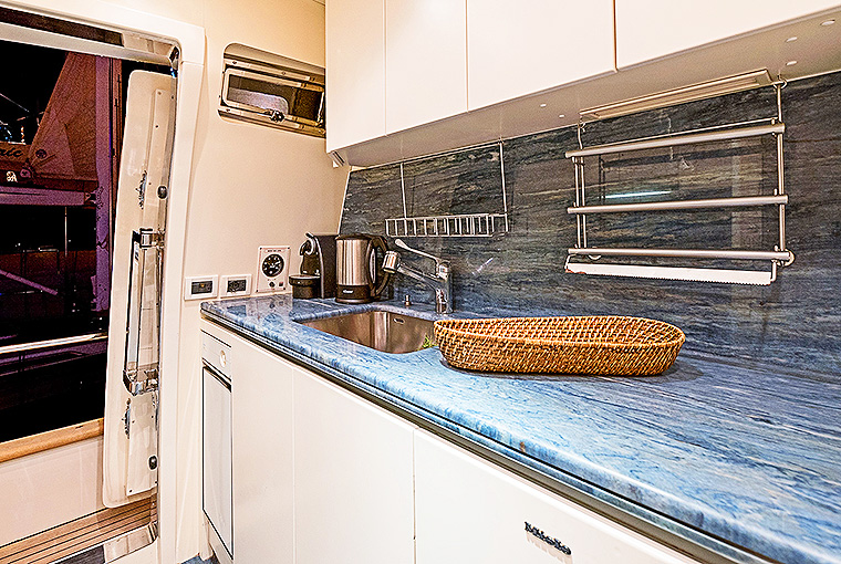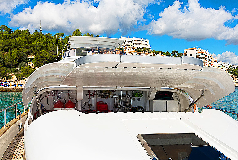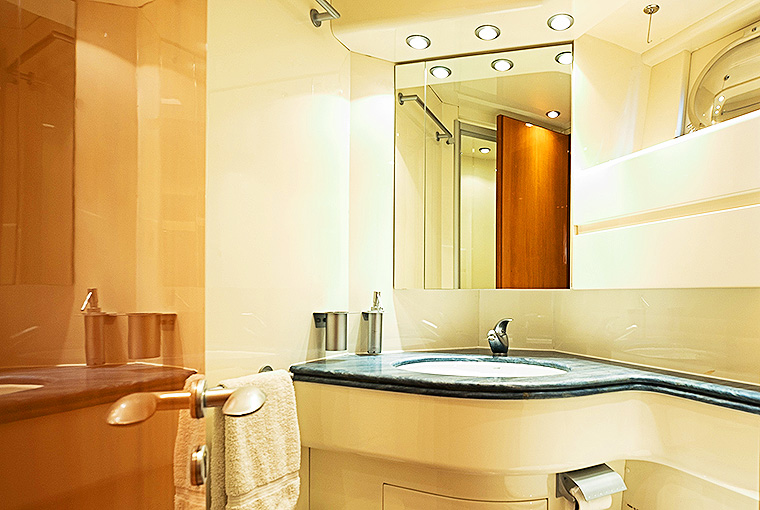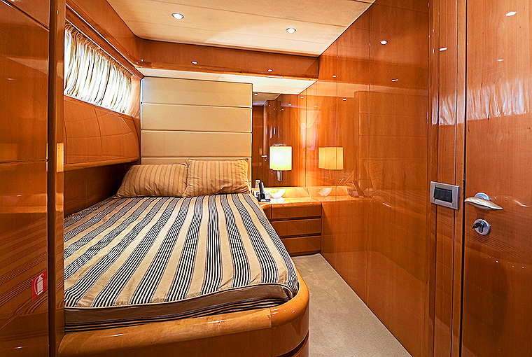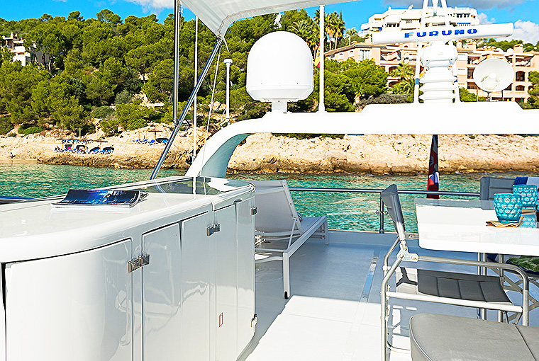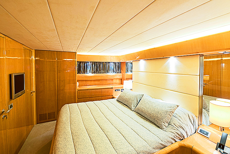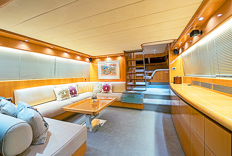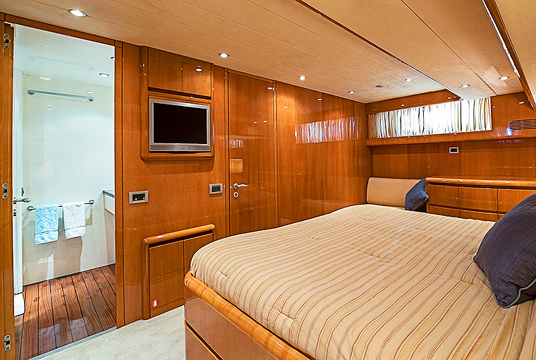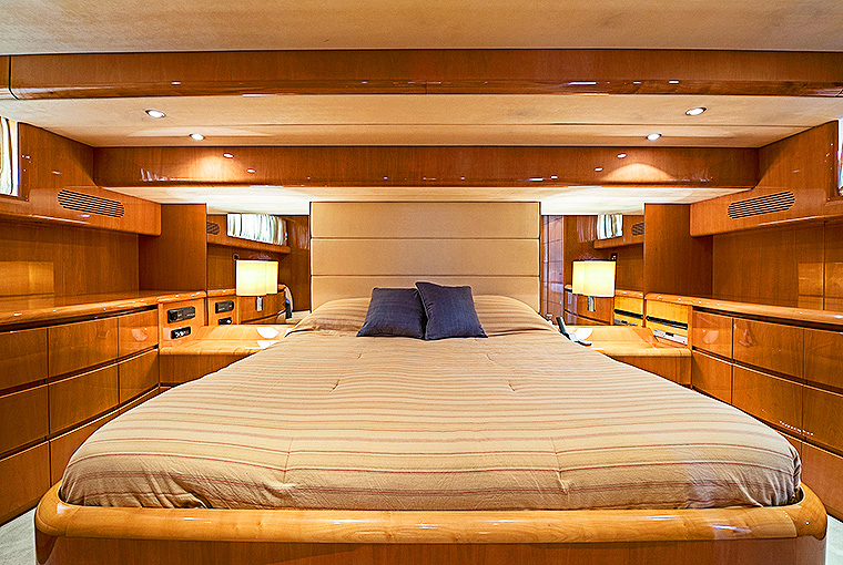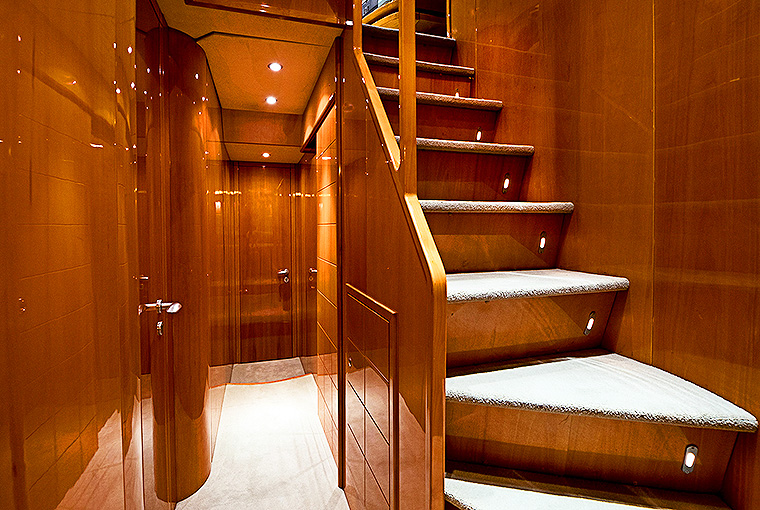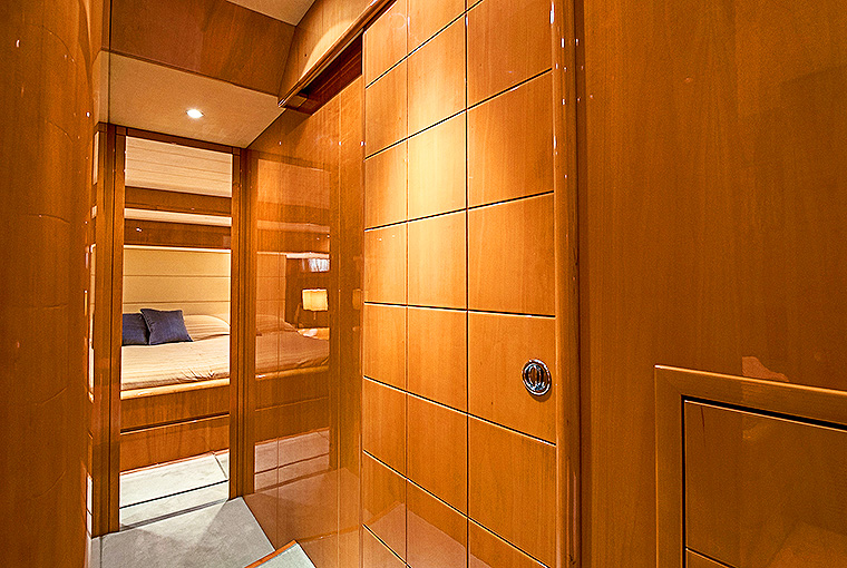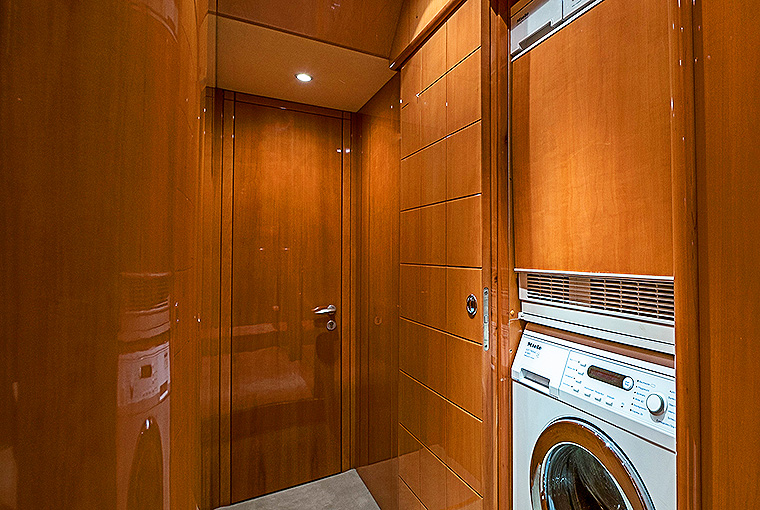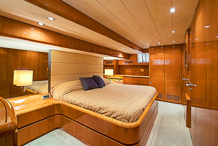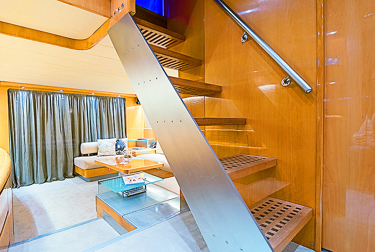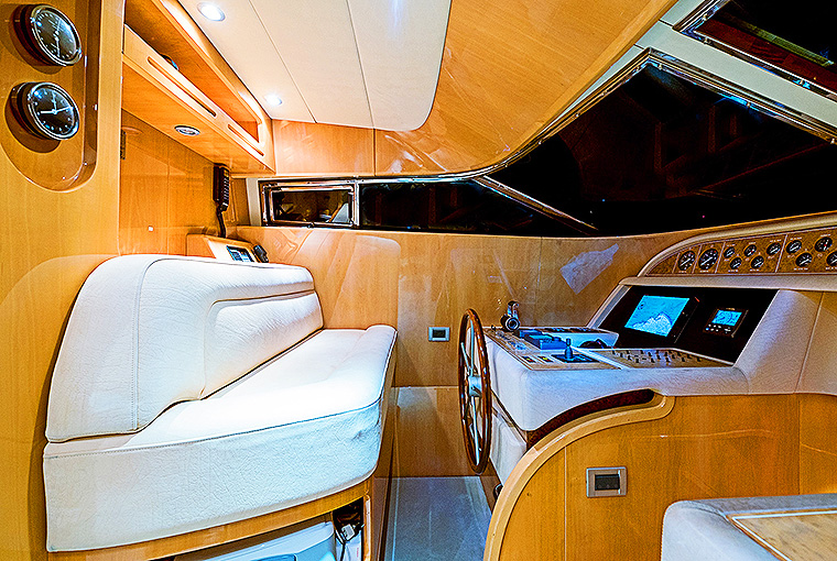 This yacht is designed with sophisticated systems allowing easy operation by one experienced owner or one captain. There is easy access to the flybridge and side decks, and with the high power bow thruster, and stern engine control station in the aft cockpit, this yacht is an easily handled boat for mooring or berthing. Everything is designed for pleasure and ease of use, and offers the best performance over a wide range of sea conditions.