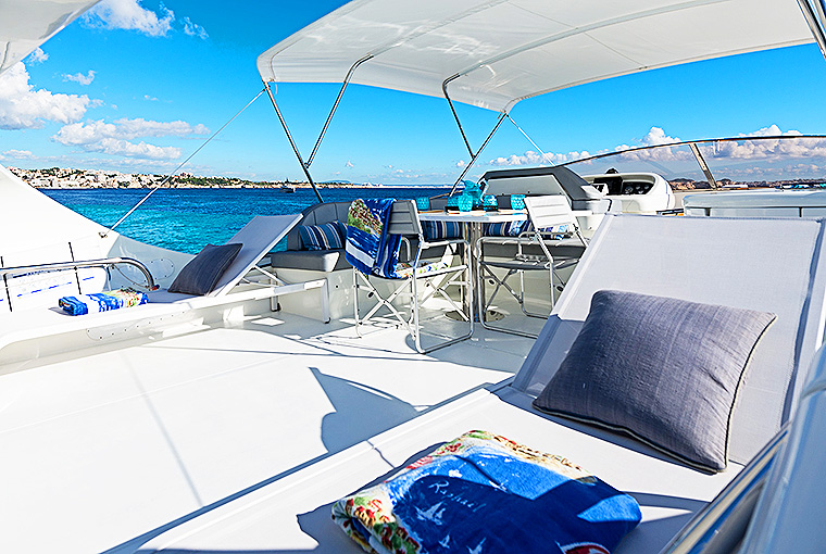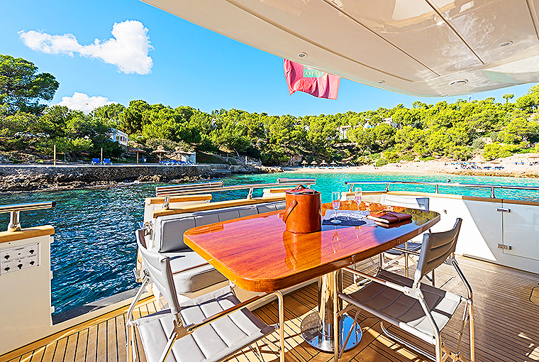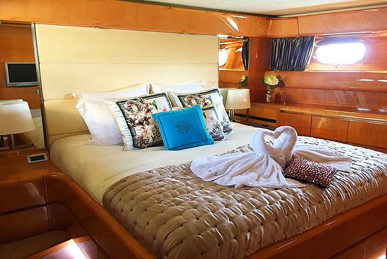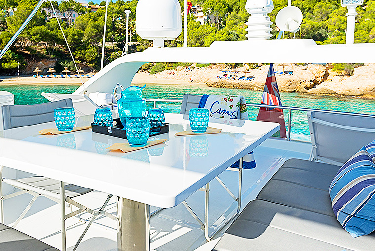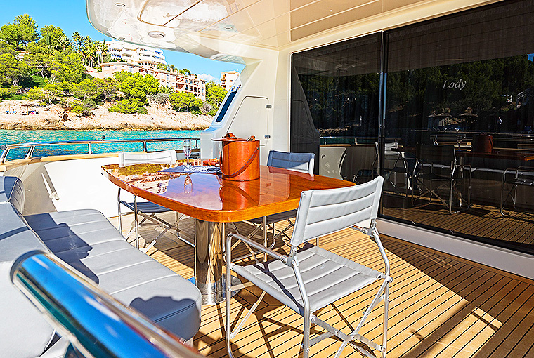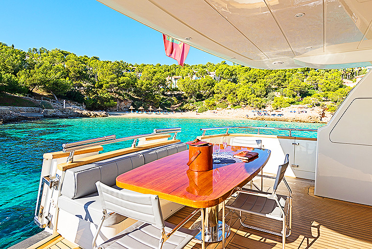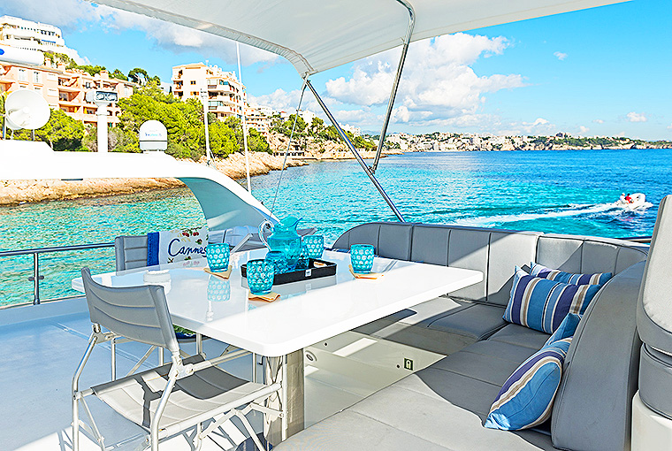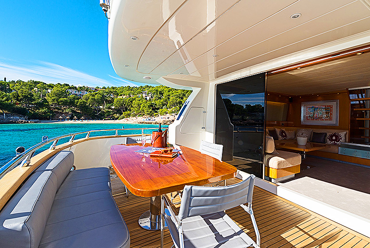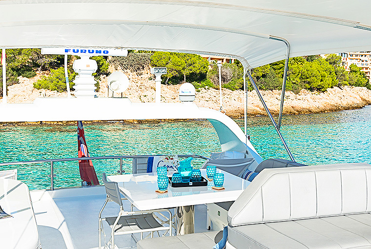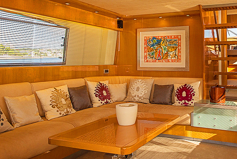 As can be seen from the photographs, she has been tastefully designed with excellent choices of quality soft furnishings and wood finishes. She has a full Mediterranean specification with an extensive list of extras. This Maiora 20´s stylish design offers an optimum use of space for a family to live aboard in luxury and comfort. The hull design and tunnel shaft system provides performance and outstanding sea handling and manoeuvrability.